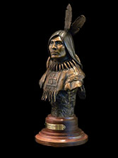 This piece depicts a Chiricahua Apache sentinel standing guard, protecting his people. The Apache evaded thousands of American and Mexican troops for months, defiantly avoiding being captured and sent to prison. They were one of the last major forces of independent Native American warriors who refused to accept the United States occupation of the American West.