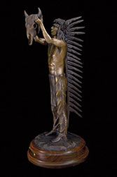 The buffalo was the heart and soul of the plains indians. The buffalo provided food, clothing and shelter, so the Native Americans and the buffalo were both physically and spiritually connected. This piece depicts a Cheyenne chief offering a prayer to the Great Spirit for providing for his people.