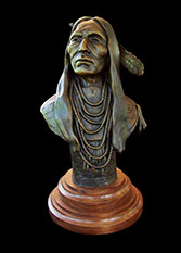 Native Americans referred to the calvary as Long Knives because of the swords they carried. This piece is a portrait of George Sword, also known as Man Who Carries the Sword, or as I call him in a more traditional native way, Long Knife. He served his tribe as a medicine man, holy man, camp administrator and war leader. He later became captian of the tribal police, feeling his work as police captain would help his people transition to the new era.This piece was inspired by a photograh taken by C.M. Bell in 1877.